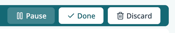 To stop, press any of the buttons: pause, done, discard
